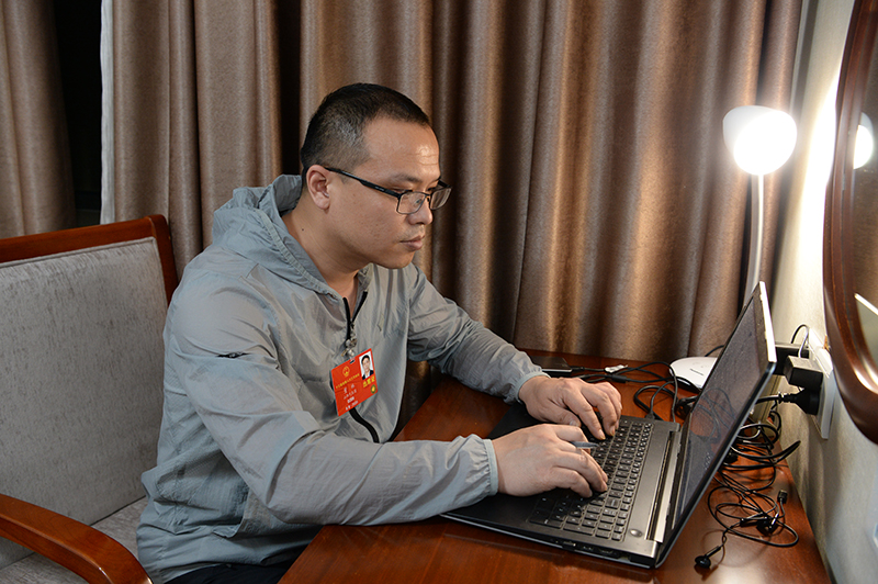 5月21日,全國人大代表董林在山西代表團駐地工作。新華社發(fā)(李聯(lián)軍 攝)