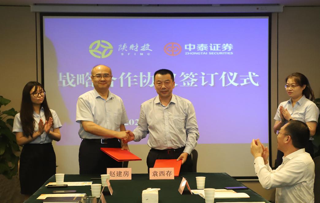 會上,李瑋董事長、王銀科總經(jīng)理對公司成立背景、金融業(yè)務(wù)發(fā)展等有關(guān)情況分別做了詳細介紹,并就開展金融投資合作事宜進行了深入溝通和交流。隨后,陜財投副總經(jīng)理趙建房、中泰證券副總裁袁西存作為代表簽訂了戰(zhàn)略合作協(xié)議。