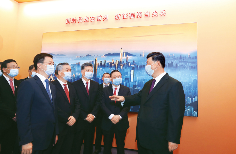 2020年10月14日,深圳經(jīng)濟(jì)特區(qū)建立40周年慶祝大會(huì)在廣東省深圳市隆重舉行。中共中央總書記、國(guó)家主席、中央軍委主席習(xí)近平在會(huì)上發(fā)表重要講話。這是當(dāng)天上午,習(xí)近平等參觀“從先行先試到先行示范——慶祝深圳經(jīng)濟(jì)特區(qū)建立40周年展覽”。