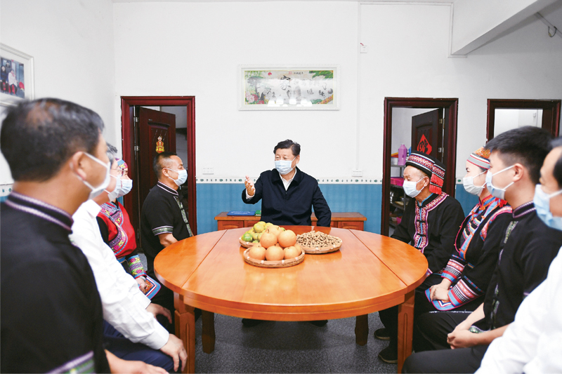 2020年9月16日至18日,中共中央總書記、國(guó)家主席、中央軍委主席習(xí)近平在湖南考察。這是16日下午,在郴州市汝城縣文明瑤族鄉(xiāng)沙洲瑤族村,習(xí)近平同村民朱小紅一家拉家常。 新華社記者 謝環(huán)馳/攝