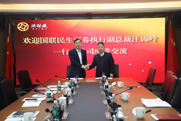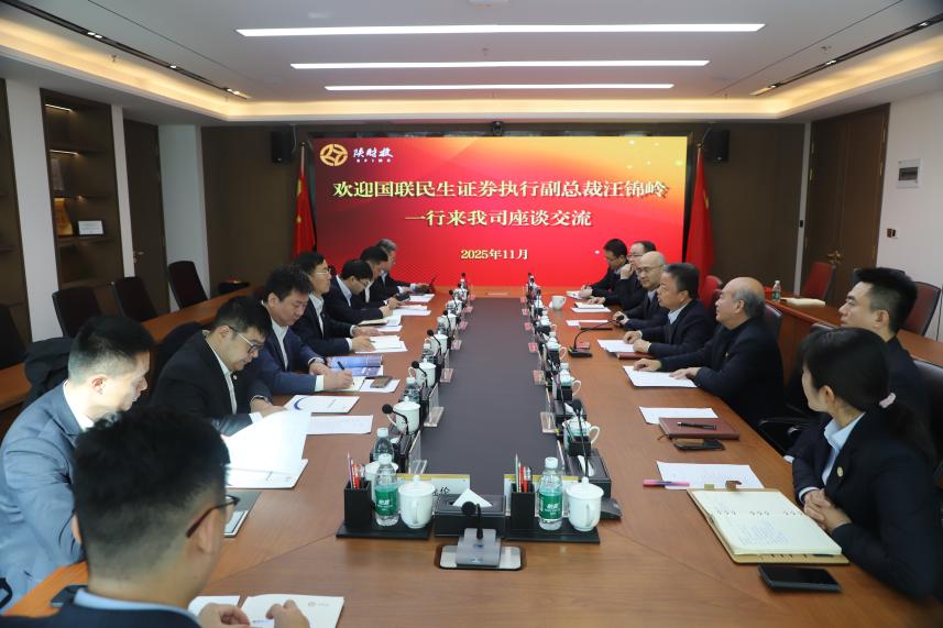 11月18日,國(guó)聯(lián)民生證券執(zhí)行副總裁汪錦嶺一行來(lái)我司開(kāi)展座談,雙方圍繞金融服務(wù)實(shí)體經(jīng)濟(jì)發(fā)展、培育新質(zhì)生產(chǎn)力和深化業(yè)務(wù)合作進(jìn)行交流。公司總經(jīng)理李平產(chǎn)、副總經(jīng)理趙建房、副總經(jīng)理周飛以及相關(guān)部門(mén)、子公司人員參加會(huì)議。