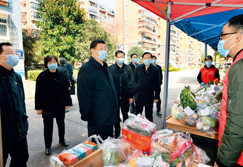 2020年3月10日,中共中央總書(shū)記、國(guó)家主席、中央軍委主席習(xí)近平專門(mén)赴湖北省武漢市考察新冠肺炎疫情防控工作。這是習(xí)近平在東湖新城社區(qū)生活物資集中配送點(diǎn),詳細(xì)詢問(wèn)社區(qū)群眾生活物資采購(gòu)和供應(yīng)情況。 新華社記者 謝環(huán)馳/攝